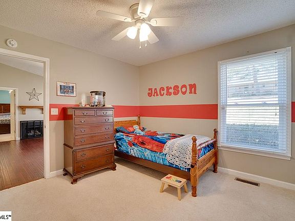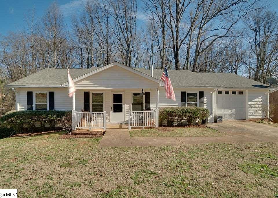 So Close To Everything, Yet So Private! This wonderful home is situated less than a half mile from Wade Hampton Boulevard and within Greer City Limits, yet it is located in a quiet neighborhood on a large lot bordering a creek and large wooded area that contains miles of biking trails. Rocking-chair front porch, gleaming hardwood floors, spacious great room with gas-log fireplace, formal dining room, and spacious kitchen with tons of counter and storage space plus gas stove! This home has all three bedrooms and both full bathrooms on the main level of the home and are arranged in a split bedroom setup for added privacy.