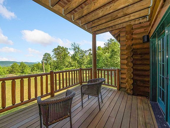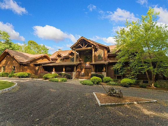 Designed for peace-seekers and entertainers alike, tranquility reigns in this 6,134 square foot home with breathtaking uninterrupted views of the East Mountains and the valley below. This architecturally unique log home combines rustic charm with unique custom touches. You'll marvel at the post and beam structure, hand crafted accents and stunning features this home has to offer. Panoramic views from every room capture every inch of this sprawling 17-acre property. The beautiful foyer draws you into a voluminous layout made for entertaining. 28' soaring ceilings in the grand room accompanied by oversized windows and a dramatic floor-to-ceiling stone fireplace and stunning views serve as the focal point of the main level. The tremendous chef's kitchen is outfitted with custom cabinetry, granite countertops and Diablo pattern porcelain floors. Inspire your inner chef with top-of-the-line Wolf and Subzero appliances including a 48 six-burner with griddle gas cooktop, double wall oven, warming drawer, steam drawer, two dishwashers, paneled refrigerator and more. A separate pantry awaits you with ample room for storage and a built-in wine refrigerator that can house up to 80 bottles of wine. A few steps away is your very own pizza bar complete with a pizza oven. Pamper yourself in either of the two private suites, each boasting en-suite bathrooms, generous closets, romantic gas fireplaces, private balconies and wonderful views. This stunning log retreat also offers beautiful mahogany decks perfect for entertaining, grilling or unwinding. The lodge-like ambiance set amongst a stunning backdrop will steal your heart away. The garage is a car-lovers dream with the ability to add up to 3 car lifts in the spacious garage and house up to 6 cars with an additional 1 car garage located in the basement. This special property is conveniently located only 6 miles from the historic Village of Millbrook where you can enjoy all of the shops and eateries along the way. If access to the city is important, the local train will take to GCS in just 90 minutes. This fabulous home delivers all of this while maintaining its retreat-like privacy by way of its unique setting! Once you experience the sheer bliss of this home, you'll wonder how you ever got along without it!