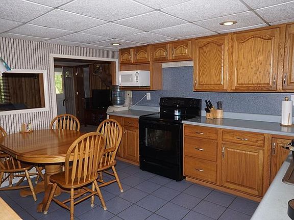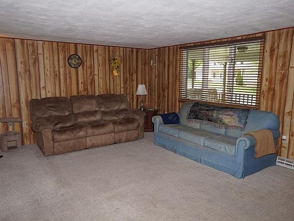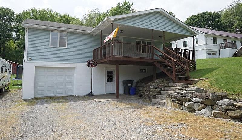 Vinyl sided raised ranch with front and rear covered porches, perfect for entertaining. Newer eat in kitchen w/ceramic tile floors, nice size living room. Home has heat pump and wood furnace. 200 amp electric service. One stall integral garage with 30x30 detached garage that has electric and oil furnace. 28x10 shed with electric allows for additional storage space.