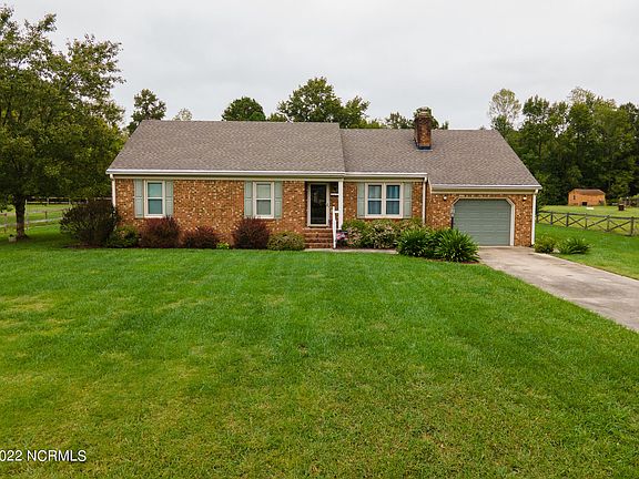 This three bedroom two bathroom brick ranch has been meticulously maintained and is only minutes to the Virginia line! No HOA and no flood zone! The home features one level living with a room over the one car attached garage. You will enjoy working in the LARGE detached workshop. A heated sunroom with plenty of natural light overlooks the backyard with mature landscaping, the detached workshop, and an additional storage shed. Schedule your showing today!