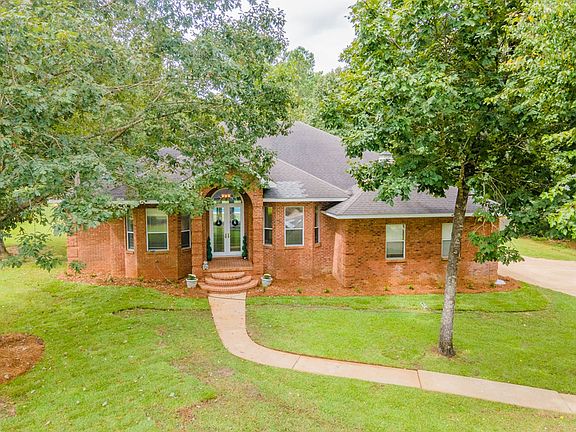 Beautiful Brick home on almost an acre in Polana. This spacious 2814 square foot 4 bedroom 3 bath home has so much to offer! The full glass double front doors and floor to ceiling windows and doors across the back let in a ton of natural light and offer an amazing view of the saltwater gunite pool and hot tub. This open floorplan has a huge living room with a beautiful stacked stone gas fireplace and custom built-ins. The dining room has a wood burning fireplace and overlooks the spacious fenced in backyard. There are solid red oak floors throughout the main living areas and brand new carpet in the bedrooms. It has a huge master suite with large walk-in closet, double vanities in the master bath with a jetted soaking tub and separate shower. The guest suite has its own private bath as well. The home sits at the end of the cul-de-sac and has a very private fenced backyard with a wired storage building and RV hookup.