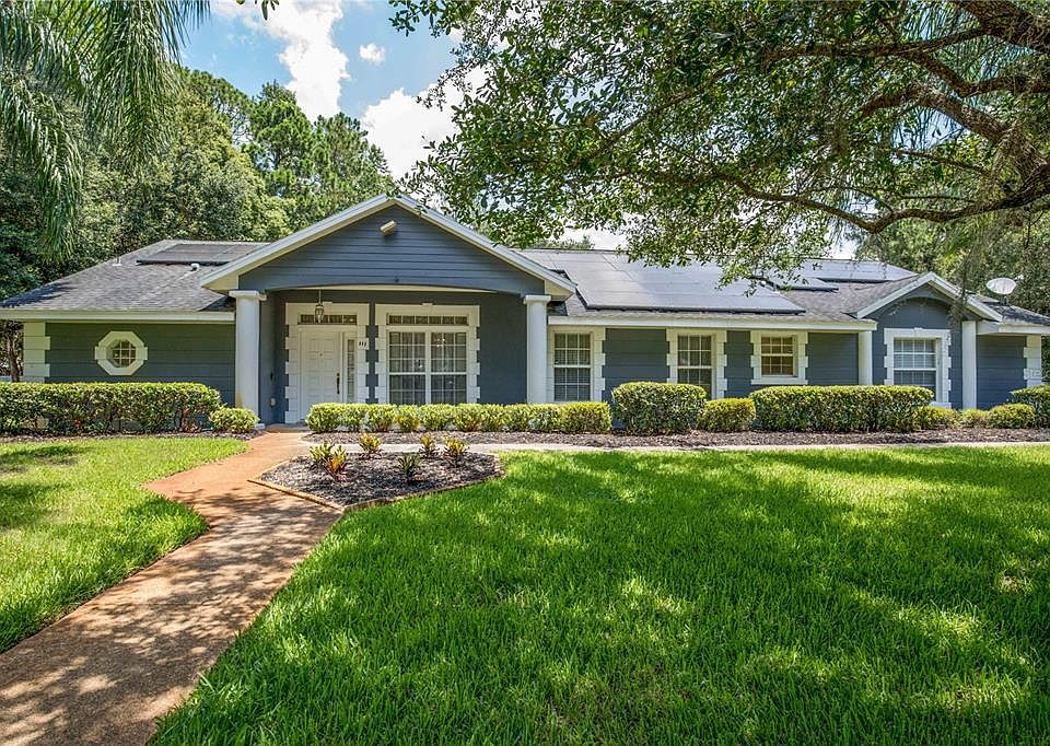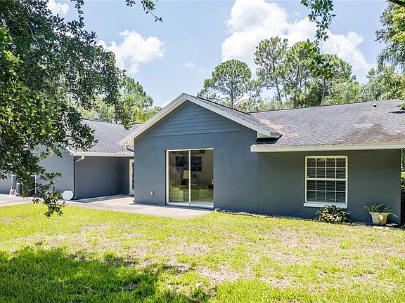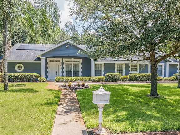 Wonderful 3 bedroom, 2 bath home on .70 acres with oversized 3-car garage and RV parking pad in desirable TIMBER OAKS. Welcome home to this tranquil, well-established Eustis community offering custom homes on large lots graced with mature trees. Amazingly there is no HOA! Enjoy peace and serenity at this tucked away location with a beautiful 2,646 SF home brimming with wonderful features. Exterior painted in 2019. Three-car attached garage with storage closet and large driveway! Inside is wonderfully unique with vaulted ceilings, large windows, built-ins and the perfect floor plan for entertaining. The living room has a wow factor with Cathedral ceiling, floor to ceiling windows. Adjacent is the dining room, which leads to the well-appointed eat-in kitchen with plenty of cabinetry, quartz counters, built in oven and microwave, and loads of storage. The family room has a glass slider to the private backyard. The master is a private retreat with a walk-in closet and private en-suite, 2 sinks, a garden tub, and a tile shower. There's also an additional two guest bedrooms, full bath, and laundry room. What a perfect place to call home!