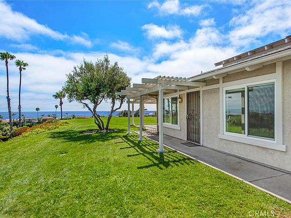 Updated single level residence with stunning panoramic ocean views from inside and out with a huge greenbelt neighboring the property on the side and in the back! This greenbelt adds incredible privacy and delivers a tranquil ambiance. This is a very rare, turnkey opportunity! Excellent location in the front row of the popular Presidential Heights II community allowing you to embrace coastal living at its finest. This is a private, single level end unit with no one above or below. Amazing, sit-down ocean views and sensational sunsets can be enjoyed from the remodeled open floor plan including the living room area, dining, and kitchen. Offering a harmonious blend of contemporary design and coastal charm, this 2 bedroom, 2 bath home boasts vaulted ceilings and is illuminated with natural light. Both functional and beautiful, the remodeled kitchen features ocean views, access to the backyard/patio, and quartzite countertops. Updated flooring throughout the entire home. Highlights of the master bedroom include a walk-in closet and an updated master bathroom. With the added bonus of the greenbelt, the backyard is a serene oasis and the ideal setting for either entertainment or relaxation with gorgeous panoramic ocean views. This is a great end unit location only steps to four community pool/spas, and just minutes to golfing, easy freeway access, shopping, restaurants and the best beaches and surfing!