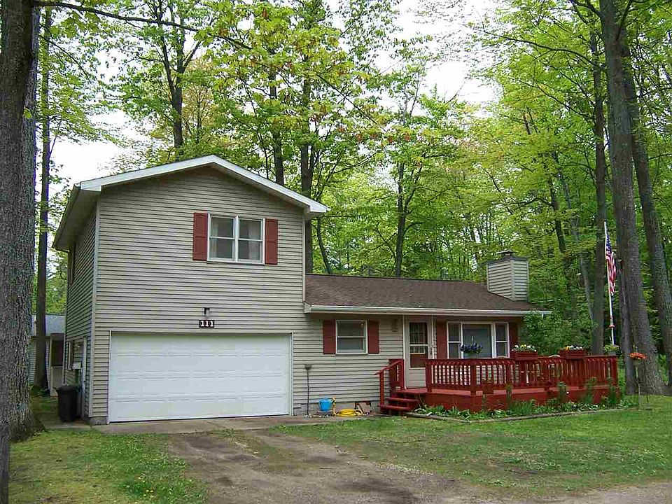 A MILITARY VETERAN'S COMMUNITY'¦..Buyer must be a Veteran to purchase. Nice 2 Bdrm, 2 Bath year round home with heated garage. Large great room with gas log (or wood burning) fireplace. Heated by natural gas hot water heat. Water provided by newer 4 Inch well, and is on the sewer system. Spacious laundry room on main level with lots of storage. Newer upper level contains two bdrms. and full bath. Master closet is 4' X 11'. This is a well-maintained home and occupied year round. Location offers direct views of the adjacent wooded state land, and enjoys a larger yard than many in the community. A short walk to your shared dock with boat mooring, and a spectacular wide, sandy beach.