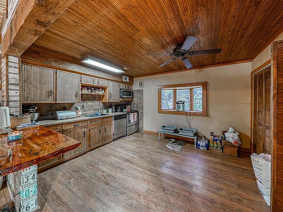 Two story home on just under an acre with a 2,208 sq ft Shop. Property also includes a carport, full length covered porch and metal roof. Lots of character and rustic touches are found in this interior.
