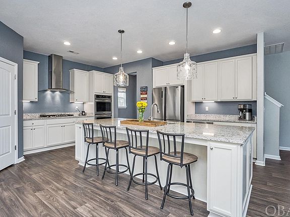 Moyock WATERFRONT neighborhood & water access! This amazing 5 bedroom, 3.5 bath home will suit everyone's needs! This Manchester model has so many extras in the lovely Tucker's Cove neighborhood such as an Open floor plan, large dining height kitchen island, wine fridge, gas stove, double oven, WALK IN pantry, sunroom,1st floor junior master bedroom, 1st floor office, extra large entertaining patio out back! Upstairs boasts views of Tulls Bay from the very generous sized master bedroom, hall window & another bedroom. The 2nd floor also features a laundry room, 3 more spare bedrooms, another full bathroom. Tucker's Cove is a small waterfront neighborhood with a community pier, walking paths and sidewalks throughout the neighborhood. Enjoy your days and weekends swimming, boating, tubing, fishing, paddle boarding or just relaxing in or by the bay.