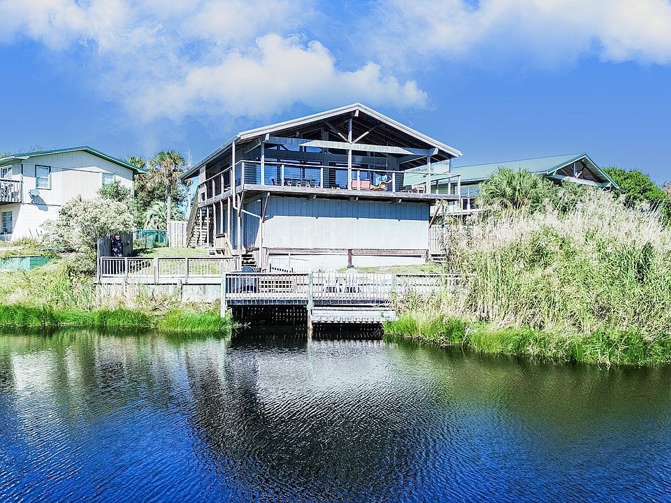 Wake up to breathtaking views of the Gulf of Mexico and Lake from your second story Family room, Dining Room and Kitchen open concept with beautiful wood beam vaulted ceilings. . True Lake Front Home in Laguna Beach. Only 1 and a half blocks to Beach access #77.''Serenity by Jan'' has 3 Bedrooms and 2 Full Baths with newer LVP flooring upstairs and downstairs .Kitchen has Stainless appliances and everything you need to cook with .Grill out on the Wrap around deck . Watch the sunsets or hang out on the large 18 x 29 private dock. Great place to Kayak ,fish or just relax with a cup of coffee in the morning and wine in the afternoon .Enjoy the Swing or hammock and listen to the waves .Serenity By Jan has everything you need to start living the Good life . large 18 x 29 private dock is a great place to enjoy fishing, kayaking and outdoor living. The Family Room Dining, Kitchen room has Windows looking out at the Lake and gulf no matter where you are standing . The entire 2 story has vaulted Ceilings. Wake up and take in the views of the Gulf of Mexico right from your living room at this breathtaking Laguna Beach vacation home. ''Serenity By Jan'' sits on a charming lake where you can kayak or fish off the dock whenever you please. Swing or get in the hammock on the large porch deck and feel the ocean breeze as you listen to the waves .Enjoy with Family and Friends and enjoy your Serenity Don't forget to enjoy the electric fireplace on those cozy evenings playing games or watching movies with the family This house combines all the benefits of a beach property and a lake house - so you can please everyone in your party. Comes Fully Furnished and rental ready . Features: Large wrap-around porch deck overlooking the Gulf of Mexico Dock on the lake equipped with a kayak and fishing poles Spacious open-concept living room with floor to ceiling windows Full kitchen: including a Brita-filtered sink, coffee makers, toasters, blender, etc. Electric fireplace 2 outdoor showers 1.5 blocks to the beach (less than 5 minute walk to Public Beach 77) Covered parking (for 2 cars) - 4 parking spots total Lower level bedroom has queen and 2 twin bunks - great for a family or a kids' room Smart TVs in every bedroom - cable in living room and master Fenced Backyard Laundry room with Washer/Dryer BBQ Grill Wake up and take in the views of the Gulf of Mexico right from your living room at this breathtaking Laguna Beach vacation home. "Serenity By Jan" sits on a charming lake where you can kayak or fish off the dock whenever you please. Swing or hammock on the large porch deck and feel the ocean breeze as you watch and hear the waves. The space Only 1.5 blocks to the beach (Public Access 77), the house is conveniently located for a perfect vacation. Enjoy with friends or family and find your serenity. Serenity by Jan has three bedrooms with two full baths, and an open concept living room/kitchen with vaulted ceilings and large windows. Grill out on the porch or eat family meals at the picnic table by the lake don't forget to enjoy the electric fireplace for those cozy evenings playing games or watching movies with the fam. This house combines all the benefits of a beach property and a lake house so you can please everyone in your party. Features: Large wrap-around porch deck overlooking the Gulf of Mexico Dock on the lake equipped with a kayak and fishing poles Spacious open-concept living room with floor to ceiling windows Full kitchen: including a Brita-filtered sink, coffee makers, toasters, blender, etc. Electric fireplace 2 outdoor showers 1.5 blocks to the beach (less than 5 minute walk to Public Beach 77) Covered parking (for 2 cars) - 4 parking spots total Lower level bedroom has queen and 2 twin bunks - great for a family or a kids' room Smart TVs in every bedroom - cable in living room and master Fenced Backyard Laundry room with Washer/Dryer BBQ Grill