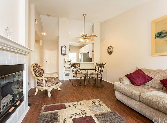 This two bedroom one bathroom condo in the hillside community of Foothill Ranch is a light and fresh upper level property. High grade laminate flooring is in the living room and dinning room, tile in the entry, kitchen and bath. The spacious living and dining room combination enhanced with a cozy fireplace opens to a large outdoor space. The patio overlooks a green belt, great el fresco dining or morning coffee. The kitchen has good storage, a breakfast bar and sparkling tiled counters. The master bedroom has loads of closet space and the secondary bedroom would also make a great home office. The unit has an interior washer and dryer. Located just a short distance from the family friendly pool. This complex is well managed and maintained with mature trees, green belts, loads of extra parking. Foothill Ranch boasts great shopping, large parks, hiking and biking in the 2,500 acres of Whiting Ranch and easy access to the Irvine Spectrum and freeways.