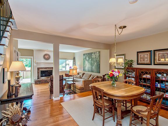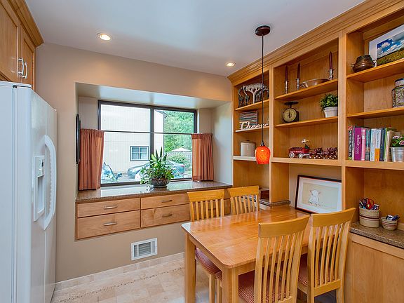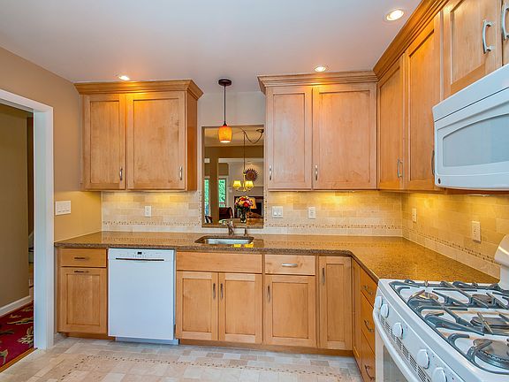 Step into this tucked away Bridgewater end unit and immediately notice the tranquility. This 2 bed, 2.1 bath townhome has hardwood flooring, lots of updates and painted in neutral tones. The eat in kit is surrounded by custom solid hardwood maple cabinets w/lots of organizational storage, granite countertops, marble floors & backsplash. An open dining room is perfect for entertaining and a sunken living room features a wood burning fireplace with custom mantle and newer sliders that showcase an outstanding view. The bedrooms upstairs are spacious and the master and hall bath both updated with newer tile work. The finished basement offers additional space for a den or office. Outside the patio has a gas line bbq and views of mature greenery. Bridgewater School District and easy commuter access.