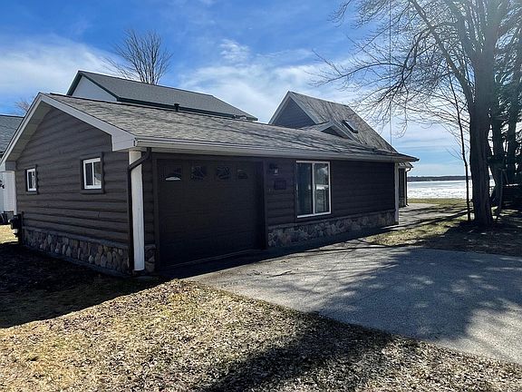 Lakefront on 60' of frontage. Chalet style with 2 bedrooms and bunk room which will accommodate many, plus a spacious loft for added room. Tongue and groove walls and ceilings, along with a field stone gas log fireplace, give it a cozy up north atmosphere. Stainless appliances in the updated kitchen.