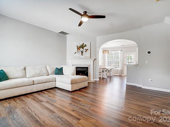 Popular Coventry townhome ready to move right in! Stainless steel appliances & white kitchen cabinets with white subway tile. Pantry, built-in microwave and smooth-top stove. Refrigerator, washer & dryer to remain for buyers. Bright open floorplan with newer LVP flooring on the main level. Updated lighting fixtures. Great room with cozy gas log fireplace. Carpet upstairs & HVAC both new in 2020. Walking distance to community pool. Roof replaced in 2011. Privacy enclosed brick patio & exterior storage. Covered front porch. Convenient sought-after Fort Mill community minutes from Lake Wylie, interstate access, shopping and Anne Springs Close Greenway!