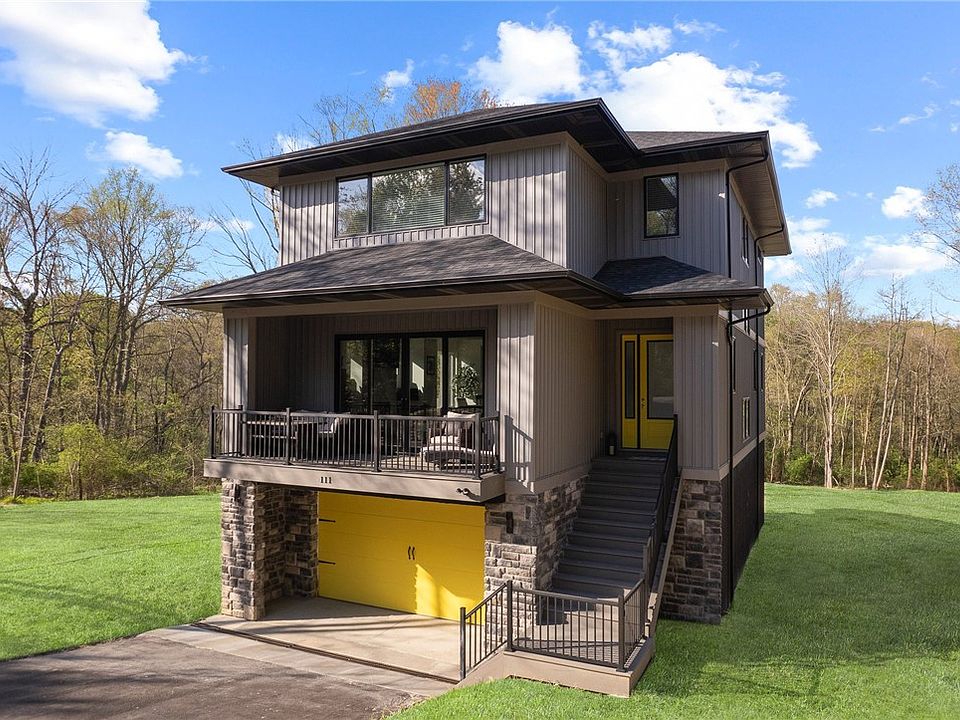 Welcome to 111 Church Lane, your dream oasis nestled on over 7 acres of land in the Blackhawk school district area, offering unparalleled privacy. This modern masterpiece, built just over a year ago, boasts a stunning open floor plan flooded with natural light, perfect for both relaxation and entertaining, Savor your morning coffee on the front balcony or host memorable gatherings on the expansive rear deck, surrounded by serene trees. Upstairs, three spacious bedrooms await, complemented by an incredible bathroom designed for indulgence. The finished lower level offers versatility, serving as a game room for lively entertainment or a cozy fourth bedroom for added comfort. Experience luxury living at its finest in this meticulously crafted residence at 111 Church Lane. Minutes from 376, shopping, and the turnpike and airport