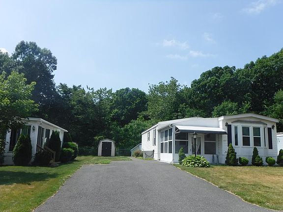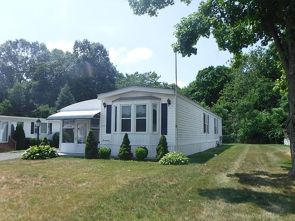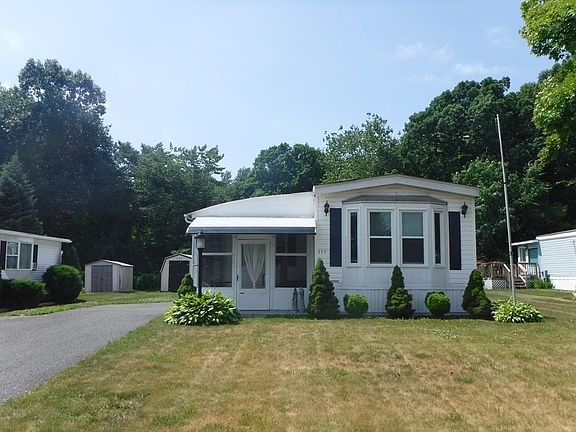 Enter with ease in this one floor living beautifully renovated double wide manufactured home located in highly sought after 55+ Brush Hill Community. Enjoy the fantastic natural light as it dances throughout the home. Well thought out kitchen area acts as a sous chef for the cook of the house. Spacious dining room and open Living area with Bella wood floors. Generous Master bedroom featuring a master bath with double sinks, full size shower stall with grab bar and adjustable bench. Second Bedroom features bay windows and plenty of closet space. Energy efficient windows (2013) Bella wood floors (2013) Updated electrical (2013) newer appliances, gas hot water tank (2015) Shed (2009) (APO) All you need to do is unpack and make this house your home!