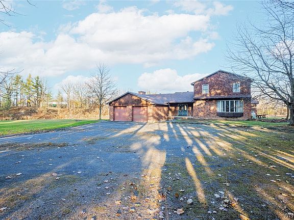 Tucked in a serene location on the southern border of Batavia’s city limits, you’ll find this 7-acre, one- of-a-kind house. Perfect for relaxing & entertaining! Gorgeous view of a stocked, spring-fed pond. You're welcomed into a stone foyer w/ attached, formal dining room & the heart of the home, a large, eat-in kitchen. 1st Floor laundry 1/2 bath, & primary en suite. 3-season bar room w a beautiful stone fireplace. Off the bar room is a roughed in bathroom, plumbed. An upper BDR was used as a living room, can be a 5th bedroom w addition of a door. The garage features a wood stove that can heat the garage & bar room once chimney is connected & is inspected. There are appx 50 grapevines. Located off Ellicott Street/Route 63, turn onto Lehigh Avenue, then turn left onto Creek Rd, & immediately turn left onto Lehigh Rd (dead end road). There is no Clifton Ave St sign. After the cul-de-sac, continue straight and the house is set back on the right. (Not to be confused with the Clifton Ave. directly off Ellicott St/Rte 63). Delayed negotiations, offers due 11/21/23 1:00pm.- House sold AS-IS. DO NOT WALK PROPERTY WITHOUT PERMISSION. MONITORED BY A NEARBY CARE TAKER.