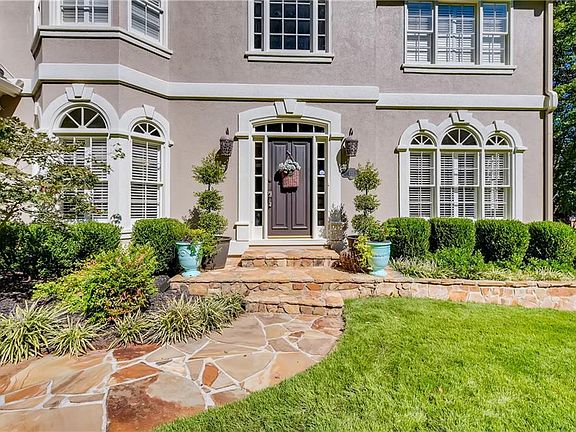Absolutely stunning designer hardcoat stucco home! Exquisite touches throughout including hardwoods on the main, gorgeous updated light fixtures, fun wallpaper, fresh paint, updated textured carpet up and elegant window treatments. There's a very spacious chef's kitchen enhanced with glass tile backsplash, marble on the island, newer gas cooktop and dishwasher, and grey washed wood cabinets all open to the most charming breakfast area and huge great room. The casual elegance of this open floor plan is perfect for entertaining...enjoy the great room fireplace and walk-up bar. Also on the main floor find a warm inviting dining room and perfect office that can easily be converted to a bedroom with en-suite bath. Access upstairs via the front or back stairs to find 4 charming bedrooms and 3 full baths. The master suite offers more lovely design and space including a newly renovated spa-like bath with stone counters, wood-toned tiled floors, cool lighting, slipper soaking tub and seamless glass shower. Possibly the most wonderful, charming space is the covered back porch offering a quiet, cozy respite with views of the lush professionally landscaped yard. Located in popular Windward offering 195 acre lake, marina, first-class Tennis Center, Swim center and a variety sports/paly parks within walking distance from this home...and, just minutes from the excitement of Avalon and the new downtown area of Alpharetta. And, let's not forget the award-wining schools within walking distance too!