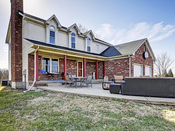Just minutes from I-71 and La Grange! Only $315,900! Ideal mini farm for horses or livestock! No HOA rules! Big 4 bedroom, 3 full bathroom, 2 story on 5+ acres, big fishing pond, fenced pastures, and stalled 40x24 barn, run-in shed, plus outbuilding and round pin for horse riding and training! Enjoy fresh farm eggs. Step inside this beautiful low maintenance home from the front porch to a spectacular two-story foyer that opens to a charming family room with fireplace, multiple windows, and wood flooring. The spacious formal dining room offers multiple windowed views, custom crown molding, and new flooring. This home has an open floor plan, oversized breakfast room, and spacious kitchen with center island seating. A huge breakfast area, perfect for a big family! Great floor plan!