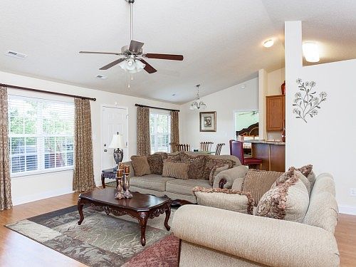Full brick 4 bedroom/ 2 bath home in neighborhood with great amenities. Amenities includes; pool, clubhouse, playground, walking trails, fishing lake, underground utilities, and public sewer. Just 4 minutes from Madison Hospital, WalMart, restaurants and other entertaining. Enjoy the low traffic cul-de-sac. Cozy fireplace in the family room and open kitchen great for cooking while entertaining. Master is isolated with double vanity, garden tub, and walk in closets. Fourth bedroom could be used as an office. Great shade in the back yard.