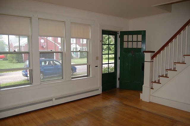 This home has a cozy, comfortable design including a big eat-in kitchen with a giant bow window and pantry closet, formal dining room and front living room. There is also a first floor bedroom and full bath. A nice glassed-in porch is a great three season space. Upstairs are two bedrooms, both with hardwood floors, and a second bath. An attached garage with storage above is very convenient. This home has been lovingly maintained including new roofing in the last 2-3 years and a recent boiler too. All on a nice level lot at the corner of College Street and Woodrow Avenue.