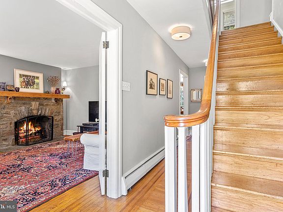 Built in 1925, this stone Dutch colonial is situated in one of the best locations in Swarthmore. The home has many wonderful features and substantial updates throughout. A flagstone walk leads to a beautiful entry hall leading to an expansive living room with a wood burning fireplace and floor-to-ceiling built-in cabinets and bookshelves. French doors in the living room open to a lovely stone patio overlooking the property, surrounded by mature trees, shrubs, plants and flowers creating a hidden oasis. To the left of the entry hall is a charming den with a large stone gas fireplace. The thoughtfully updated kitchen features gorgeous soapstone counters and island, marble backsplash, Viking range, deep sink, Bosch dishwasher and cherry cabinets is an inviting space to eat, do homework, or work from home. The large dining room includes a wall-to-wall picture window and provides a lovely space to gather for meals with family and friends. The powder room and stone-floored mudroom/laundry room complete this floor. The second floor boasts an exceptional primary suite with a beautifully renovated spa bath, a second bedroom with ensuite bath, three additional bedrooms and hall bath that complete this floor. Bonus!!! The substantial third floor offers the potential for additional living space and includes a large bedroom/office with a walk-in closet, bathroom, two storage closets, as well as a large storage space. The full basement includes utilities, storage and a semi-finished rec room/pool room with egress. Walk to town, train, pool, Swarthmore College, parks, and the award-winning Swarthmore-Rutledge Elementary School! Twenty minutes by car to downtown Philadelphia and 10 minutes to Philadelphia International Airport. Do not miss the opportunity to own this very special home.