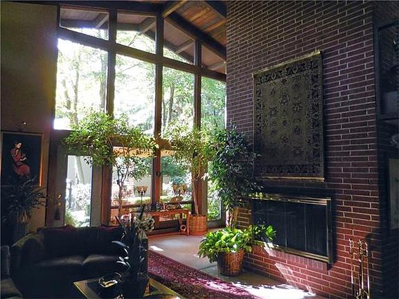 Stunning contemporary designed by Don Owens who studied under Frank Lloyd Wright. Award winning landscaping with private outdoor spaces. Walls of windows and vaulted ceilings in LR & DR. Kitchen offers all new stainless appliances, 2 convection ovens, solid wood cabinetry and new stained concrete counters. A first floor family room is adjacent to the kitchen and it has a brick floor to ceiling fireplace. Two large bedrooms on the main level, and the master suite is on the upper level and is open & flooded with natural light, with access to a private deck, bath & adjoining den. Lower level game room has a wet bar, powder room, laundry & heated 2 car garage. Certainly not a cookie-cutter house! Last home on the street and faces beautiful wooded greenspace.