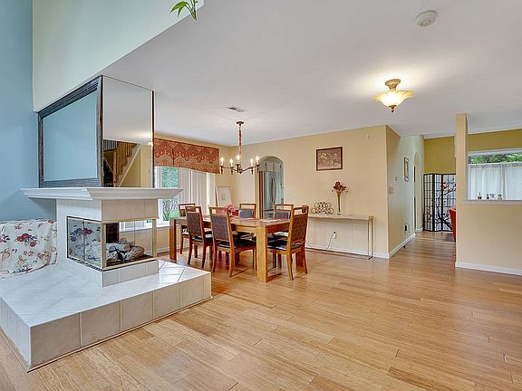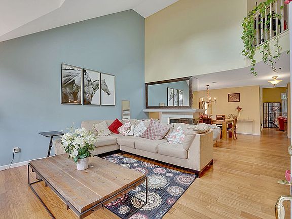 Beautiful well maintained end unit townhome in a desirable community Enclave. Modern open layout with skylights and large windows, bright and airy. High vaulted ceilings with skylights in living room and family room. Bamboo floor throughout the first floor. Two sides gas fireplace between the living room and formal dining room. Family room with sliding door to the very private backyard facing the preserve area. Eat-in kitchen with granite countertops and a large breakfast area. Master bedroom with full bathroom and walkin closet. Spacious master bathroom has a double sink vanity, a stall shower, and a soaking tub. The community offers a club house, outdoor pool, tennis courts, and playground. Excellent blue ribbon school district. Convenient location. Just unpack and move in to enjoy this summer in this cozy home and nice community!