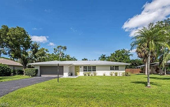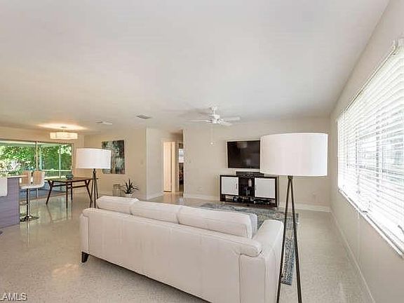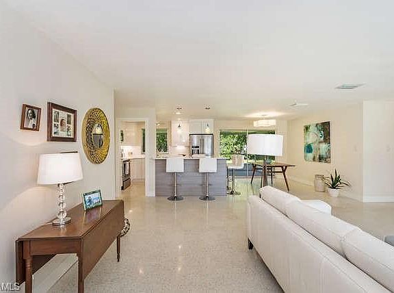 Mid-century modern gem in Palm River Estates features a new kitchen and bathrooms, recently painted inside and out, new shingled roof (2018) and many additional improvements. The original Terrazzo floors have been re-polished and new exterior doors added to enhance this charming home. Open floor plan with two potential masters (both with private bath). New garage door & opener, hot water heater, Plumbing & electrical upgrades, all new light fixtures. There is a large screened lanai overlooking a spacious private lot with plenty of room to add a pool! Tired of high HOA fees and controlling associations? This property has neither! Best of all, Palm River is close to all of Naples great amenities...Beaches, Shopping, Restaurants & Hospitals. The Home is now empty; no furniture inside. Front Shrubs were removed after photos taken. SELLER SEEKS "AS IS" CASH BUYERS. PLEASE USE NABOR CONTRACT.