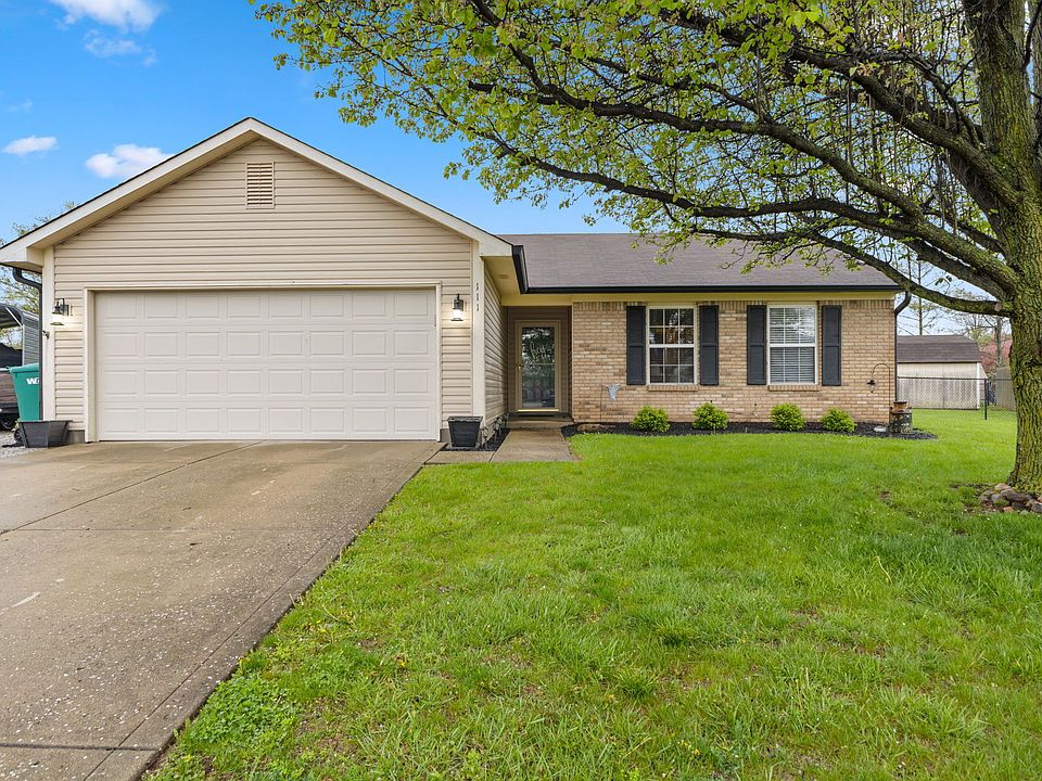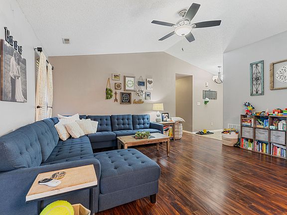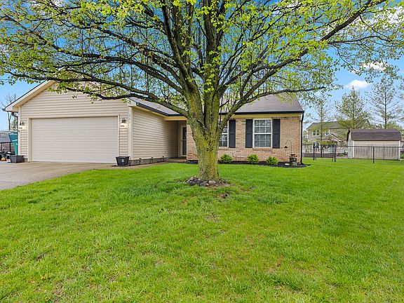 Come see this lovely ranch-style home nestled in a cul-de-sac, offering 3 bedrooms and 2 full baths. It boasts cathedral ceilings in the great room, a breakfast bar in the kitchen, and all new stainless steel kitchen appliances (excluding the microwave). The primary bedroom includes a walk-in closet and ensuite with tub/shower combo and has lovely views of the pond. Enjoy outdoor living with a backyard patio featuring a custom overhang and fire pit with seating for relaxation and entertainment while overlooking the serene pond view. The home also features updated front yard landscaping, partially fenced back yard, a mini barn for additional storage, a new HVAC system, new carpet, and a finished 2-car garage with a new garage door. This home is conveniently located near shopping and State Road 67. Don't let this one get away!