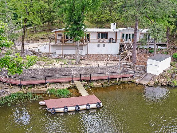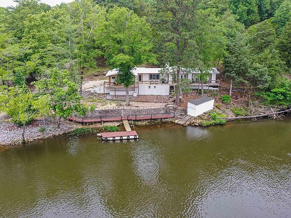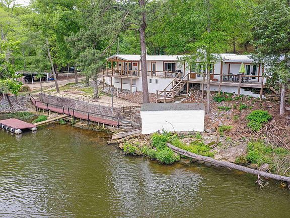 Newly Renovated Lake Mitchell Home! This Lake home was totally renovated in 2021. New Kitchen with granite counters, new appliances, New Baths with tile shower, new Metal Roof, new Split System-Heating and Air (2), beautiful Concrete stained flooring throughout the home, new double pained windows and new interior/exterior doors. The large kitchen has the original cast iron sink, a large square island and large dining room area that opens up to the living room. The very large living room has a full brick wall wood burning fireplace and offers panoramic views of Lake Mitchell. There are 2 large bedrooms that can accompany multiple sleeping areas. Full bath with walk-in shower. The 1/2 bath can easier be converted to a full bath. The newly built porch is the full width of the house with cable railing. Enjoy the lake breezes on the covered porch that has cathedral ceiling. The house is located directly across from Ware Island (Airport Island). Floating pier, boat ramp, 3 car carport.
