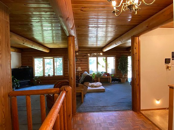 Log cabin in the trees? Yes please! This gorgeous 4,000sqft open concept home is filled with traditional accents, ample storage, large rooms & endless possibilities! The main level greets you with a gorgeous deck off the dining/living room. In addition to the office, the primary suite offers a walk in closet & storage room concept! The downstairs features 3 non-conforming extra bedrooms, 2 large storage rooms, complete bathroom and large living space! Enjoy the 26x26 complete shop/detached garage in addition to the acreage that provides room for garden space, pasture & more! This Log Cabin offers it all!