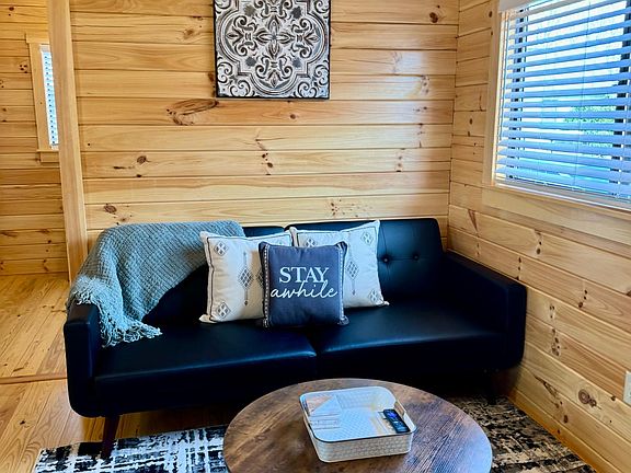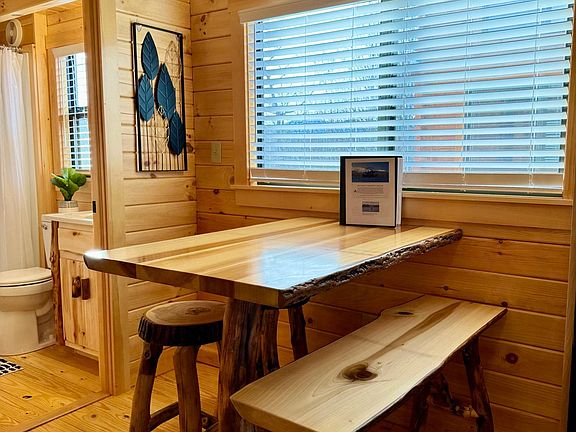1,550 with a minimum three month lease. Rates may increase May 2026** Discover our new 2023 Log Cabin for rent in the scenic mountains near Lake James in Marion, NC! This charming, fully-furnished cabin is situated in a gated resort with exclusive access to Lake James. Enjoy a range of amenities including a swimming pool (open from Memorial Day to Labor Day), boat storage, a dog park, and basketball/volleyball, playground, gem mining and more! It's just a short stroll to our private cove on Lake James. The master bedroom welcomes you with a queen-sized bed, while the second bedroom features flexible bunk beds - a double below and a twin above. For additional sleeping arrangements, head up to the loft where two more twin beds await, providing a cozy retreat or storage area. The kitchen is well-equipped with all the essentials, including a cooktop, microwave, refrigerator, cooking utensils, and a coffee maker and toaster. Shared laundry facilities are available. We require the first month's rent to be paid as a security deposit. A maximum of two pets are permitted with a $400 nonrefundable deposit required for the first pet and an additional $35 per month for each pet. Cleaning Fee: $150 deducted from security deposit when you leave. Each cabin and cottage can accommodate up to two vehicles. Any trailers or boats must be stored in the designated area, which incurs an additional fee. In addition to complimentary Wi-Fi, our cabins come equipped with 32-inch Roku TVs that offer Spectrum cable and access to free streaming channels. Any prospective monthly and seasonal residents are required to undergo a background check and obtain approval from Barefoot Landing Management. Each individual aged 18 and over who will be residing in the property must complete the application and background check process. Short-term weekend or weekly rentals are also available. Additional cabins are available, including options with two bedrooms and lofts. No smoking inside home. Electricity is metered and billed at the end of each month.