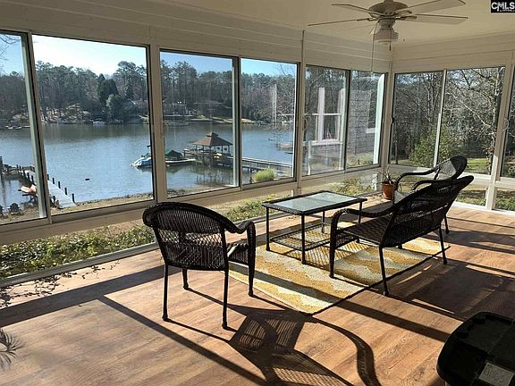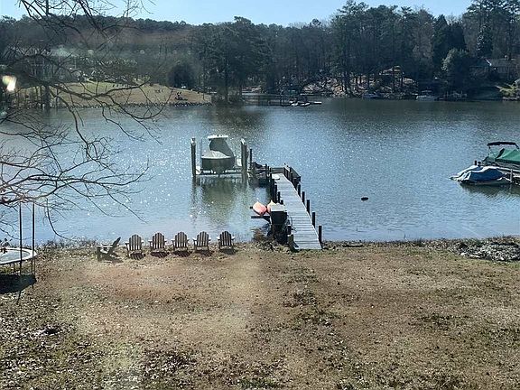 Privacy abounds on this one acre lot with paved road and drive. Bring your rocking chairs for this inviting front porch. Entire main floor remodeled with new floor plan, flooring, lighting, kitchen, & molding. Ship-lap fireplace wall, updated bathrooms, open floor plan and heated & cooled sunroom that converts to a screen porch if you turn off the heat/air to enjoy the lake view. Master bedroom with private spa like bath, guest room with ensuite updated private bath, huge laundry - utility room, another full bath, plus formal dining, open kitchen and great room on the main floor. Walk-out basement hasn't been renovated but has two large bedrooms, full . bath, and large downstairs kitchen & great room. Shared boat ramp, dock with boat lift.