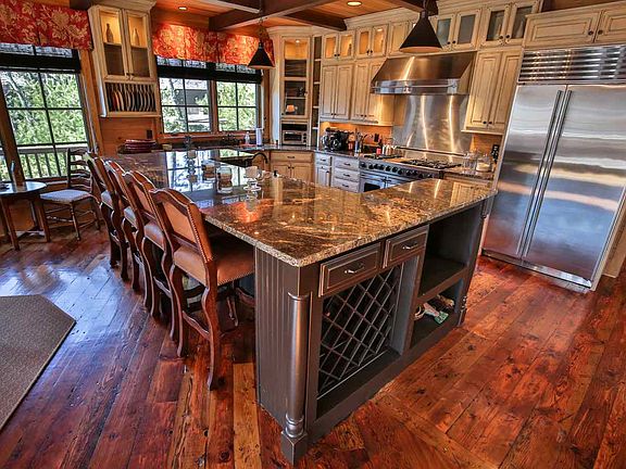 Luxury lakeside living in this custom designed craftsman-style home with all the custom qualities you would expect. This stunning home has a style that mixes unique rustic accents with functional comfort including reclaimed plank hardwood floors. Short walk to the covered dock with boat lift and deep water. This home has five wood burning fireplaces, detailed and custom rock work and views from every room. Viking/Subzero appliances, custom cabinetry with beautiful granite and wood beamed ceilings, cypress walls and wine cellar. Outdoor entertaining spaces overlooking emerald green Lake Keowee. Finishes throughout this home are exceptional, demonstrating refined taste and workmanship. Start building your memories today. Membership required.