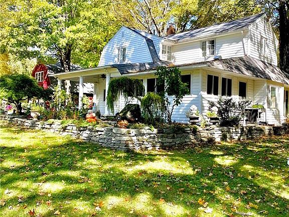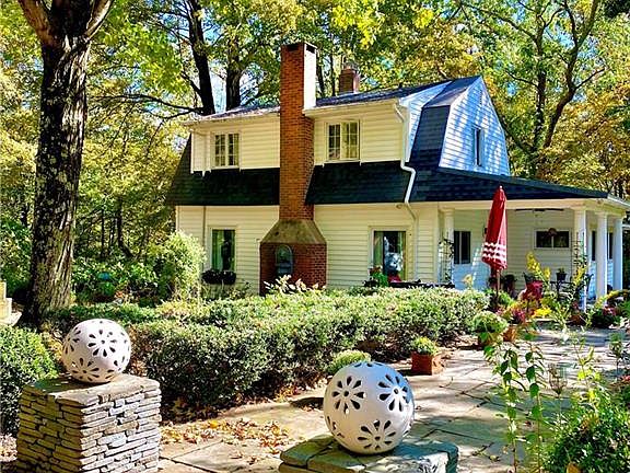 Reclaiming the wild soul at this special artistic enclave retreat style property. The possibilities of reconnecting to nature are endless. This charming 3 bedroom Gambrel Colonial home & additional barn/ garage with fully finished spacious family room, home office above & lower level recreation room w/bar will make this a great space for a speak easy, home office or gathering area w/ add. storage space to the back. This lovely yard scape is privately & uniquely set upon the open hillside bordering the Harlow Haggenson Sanctuary confirming an unspoiled woodland where no add. homes will be built. The exceptional setting features will restore one's tranquility & wholeness. The lovely babbling water gardens, years of professional landscaping, granite stepping stones leading to a built-in stone Amphitheater, peaceful walking trails to restore our senses, multiple stone walls & bluestone patioâs all of which will make this a unique exploration.Upon entering the covered patio entrance, one will notice many custom accents of which will set this home apart from the rest. The bright antique kitchen with a sought after authentic cast iron farm sink & graceful cream colored retro cabinetry will be a conversation piece. Open dining & family area w/ built-ins & cozy window seat, front to back living room w/ fireplace & new French doors. Expressive railings leading upstairs to Master bedroom suite to the left & 2 additional bedrms to the right.walking distance to Historical Main Street!