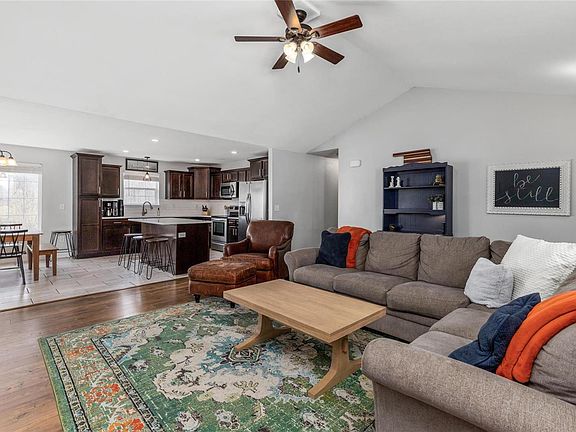- Kitchen Island, Pantry, Solid Surface Countertop(s), Double Vanity, Separate Shower, Open Floorplan, Vaulted Ceiling(s), Dining/Living Room Combo