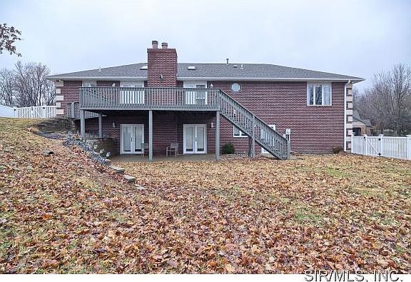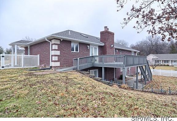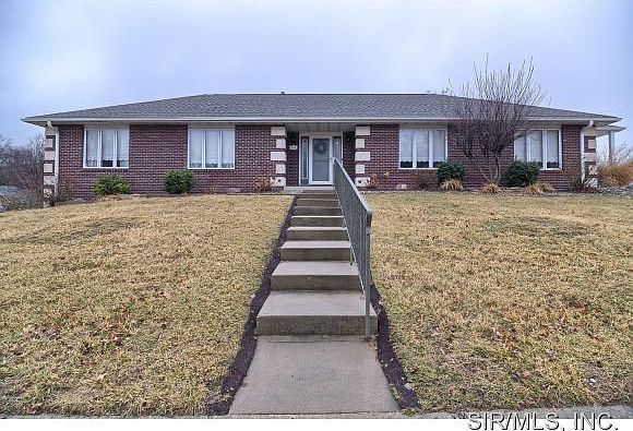 Sprawling 3200 sq foot full brick ranch in the Springmeadow subdivision is priced to sell! Features include skylights, hardwood floors, 2 fireplaces, vaulted ceiling, 2nd kitchen, fenced yard & more! Oversize side entry 2 car garage as well as a second drive with access directly to the kitchen. Large kitchen with lots of cabinets & counter space, breakfast bar & dining area. Living room has 2 sets of french doors that lead to a deck that spans the entire home. Walk out lower level would make a perfect in law suite with full bath, fireplace, 2nd kitchen and possible 4 bedroom. Easy access to dining, shopping, I-55 and Scott AFB. Roof 2011, HVAC 2011, water heater 2010. Agent owned.