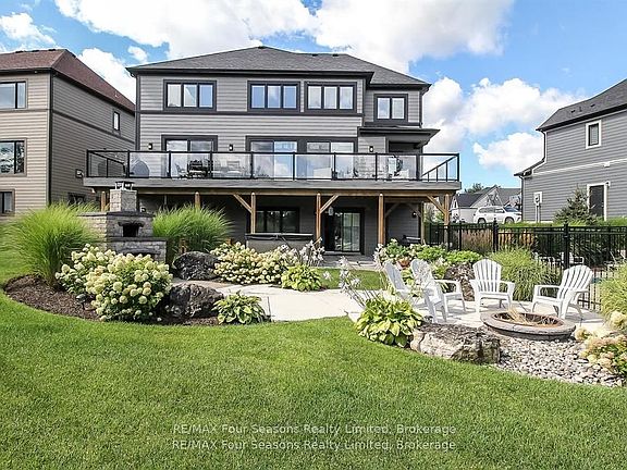 Crestview Estates home comes fully equipped as seen, and ready to enjoy this summer. This 4+ bedroomhome has the most beautiful outdoor space, its like being on vacation! Featuring an in-ground pool, hot tub,stone pizza oven, fire pit, gazebo, and mature landscaping, with a treed berm and waterfall for privacy, allconnected by flagstone paths. This home is nestled on a premium lot offering views of the par 3 13th holeof Monterra Golf Course and has views of Blue Mountain. Just minutes from the Village at Blue Mountain,ski clubs, spa, trails, and the shores of Georgian Bay. You are also minutes away from Collingwood. This isfour-season living at its finest. The open-concept main floor with stunning soaring ceilings is perfect forentertaining. The hub of the home features a stunning chefs kitchen with quartz counters, Wolf & Sub-Zeroappliances, large island, walk-through coffee bar with a bonus walk-in pantry, and a separate dining room.Custom built in cabinetry houses a framed tv and fireplace. 3 Walk-outs to the outdoor deck make thisperfect indoor/outdoor living during the beautiful summer months. Convenient mudroom with built-insconnects to both the double garage and rear deck. Upstairs the spacious primary suite offers a spa-inspiredensuite and custom walk-in closet. Two additional bedrooms have private ensuites, plus a versatile fourth bedroom / office with laundry room. The finished walk out lower level is built for entertaining, complete with a wet bar, glass wine cellar, media room with gas fireplace and an exercise space. A guest bedroom and full bathroom, along with a cold storage room finish off the space. This home truly offers the best in luxury, privacy, and lifestyle. Extras: 0.5% BMVA fee on purchase price. Optional membership @ ($0.27+HST x above grade sq. ft.) includes many benefits like a shuttle bus to village, discounts at shops and restaurants and more. Yearly fee of approximately $822.00 would apply & paid quarterly