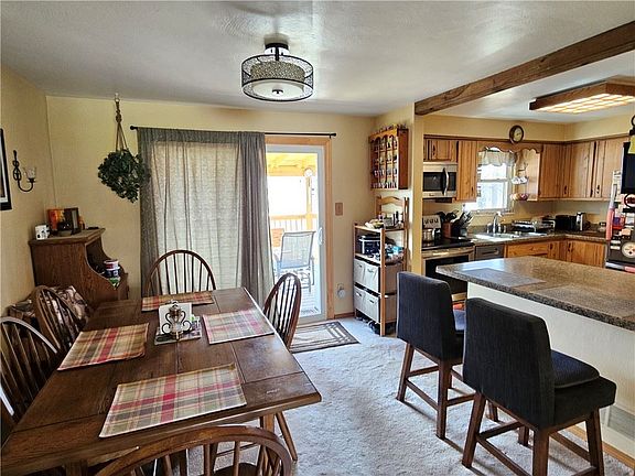 Welcome home to this charming split entry home. The main level offers three bedrooms a spacious kitchen with plenty of cabinetry, stainless steel appliances and breakfast bar area. The dining room area has sliding door that exit to large covered deck overlooking level back yard with a shed. You'll also find a lower level family room with built-ins. This home has a two car garage and concrete driveway. Updates include new siding, roof and rear deck.