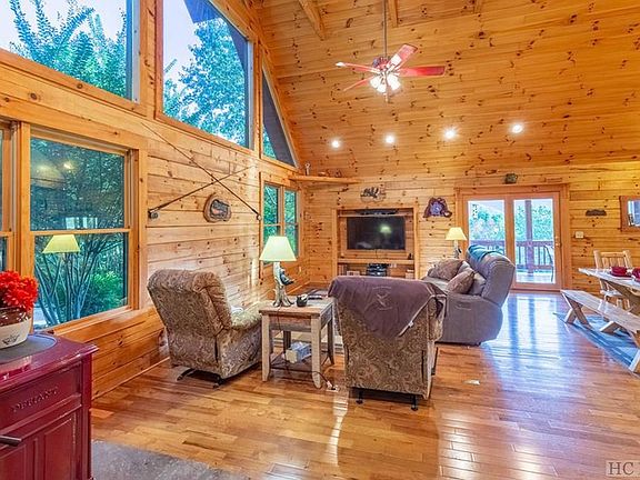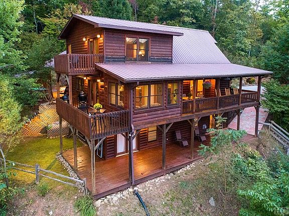 Looking for your DREAM home with extraordinary vistas w/privacy and close to town? Then you need to come see this great offering, a Log exterior w/ timber frame interior w/natural lighting nestled just above the WCU campus. Rustic appearance with stacked stone wood burning fireplace to enjoy those cool evenings. Endless porches both covered and open to enjoy the fabulous views. Open floor plan with stairs in the middle, home fully renovated and meticulously maintained. Kitchen features upgraded stainless steel appliances, granite countertops with cooking island with Gas Jenn-Air Range, Electric Wall Ovens. Master En-Suite upstairs with walk-in closet. Master Bath fully updated, you need to see it to believe it! Downstairs complete with two bedrooms, full bath and game room, pool table with wet Bar/Refrigerator. Whole house is wired for Morris Broadband with the fastest Internet in Jackson County. Walkout on to the lower deck to relax in private. Walk out decks on each level to enjoy a hot cup of coffee in the morning and a glass of wine in the evening watching the fabulous sunsets. Don't miss the spectacular opportunity to see this great mountain home!