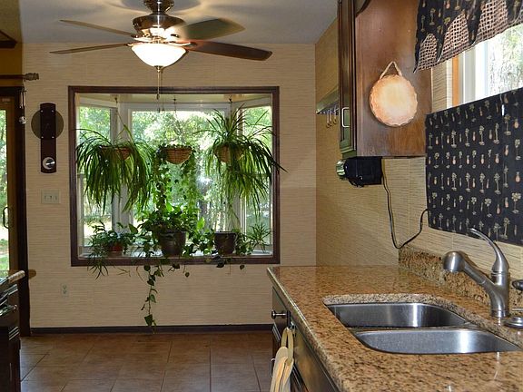 - RoomKitchenFeatures: Granite Counters, Eat-in Kitchen, Bay Window, Galley, Cabinets-Stained, Floors-Tile, Backsplash-Granite