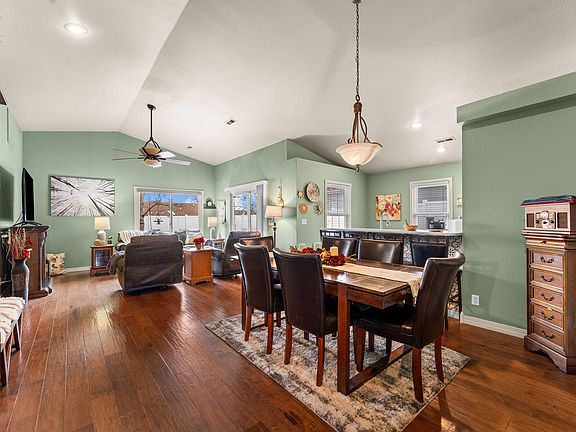 Welcome home to this custom-built 3-bedroom, 2-bath beauty offering 1,504 sq. ft. of single-level living and an attached two-car garage. Thoughtful craftmanship, energy efficiency, and modern comfort combine to make this home truly special. Enjoy owned solar panels that keep utility costs impressively low--with an average electric bill around $68! The main living area features raised ceilings, creating a bright, open floor plan that feels spacious and welcoming. The kitchen includes under-cabinet and in-cabinet lighting, adding both style and functionality, while the oversized laundry closet provides easy access and extra convenience. Step outside to take advantage of the home's outdoor living spaces. A privacy fence in the back and partial picket fencing in the front make the most of this corner lot, ideal for pets, play, or relaxation. The covered back patio is perfect for enjoying your morning coffee or evening gatherings, and a storage shed is included for extra space. Additional upgrades include gutter guards for low-maintenance living and a custom LED holiday lighting system that adds year-round charm and fun. This home perfectly balances comfort, efficiency, and custom design--ready for you to move in and start enjoying right away.