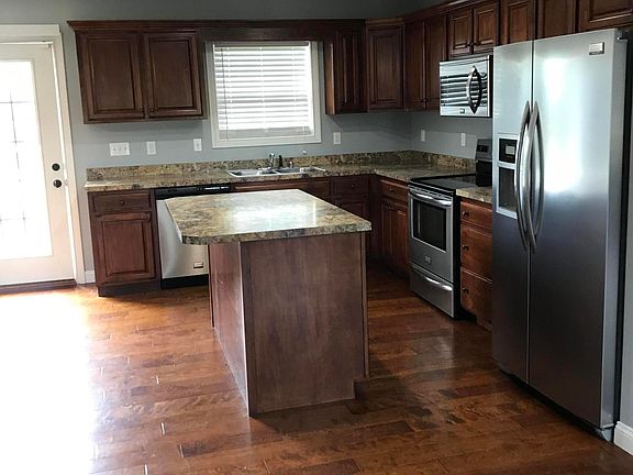 NEW PRICE!! REDUCED $9,000!! You will love this beautiful, well-kept, split bedroom home, with great décor just to the edge of town, in Bardstown. Very open plan w/living room/kitchen all open, featuring hardwood flooring, and intricate vaulted ceiling (see pics). Carpeted bedrooms. Master bedroom offers vaulted tray ceiling, nice chandelier light, and master bath featuring double vanity and walk-in closet. Kitchen features stainless appliances, and work island with area for bar stools. Bronze accent hardware. Large deck for viewing of nature and the large private backyard, backs up to trees. Double driveway, nice landscaping!