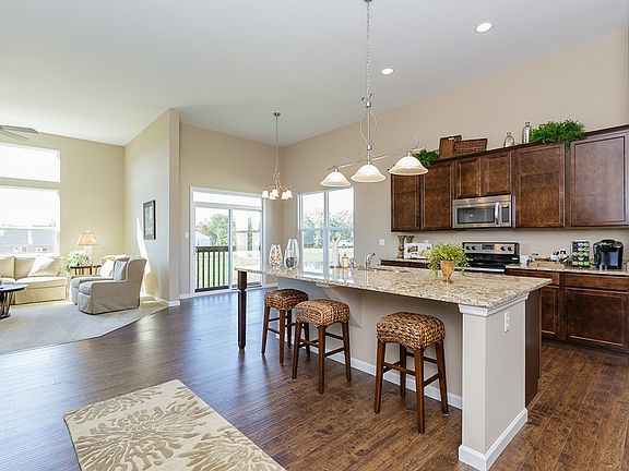 New Construction by Payne Family Homes! This popular Meridian ranch has 3 bedrooms, 2 bathrooms and 2,300 square feet of living space. The charming elevation showcases stone, low maintenance vinyl siding, enclosed fascia-soffits, architectural shingles, 3 car garage, light Craftsman detail trim, carriage style garage door, full yard sod, has professional landscaping and sits on a cul-de-sac lot. Features include dynamic 12 foot ceilings in the Great Room and 9 foot ceilings throughout, large center island in Kitchen with Breakfast bar, 42 inch cabinets, Whirlpool stainless steel appliances, Satin nickel door hardware, Formal Dining Room, Flex Room, custom wall paint, Jeld-wen Low E windows, walk out basement and more. There is easy access to O'Fallon, Lake St Louis and the prestigious Hwy 40 corridor. Enjoy the nearby shops, restaurants, services, parks and recreation as well as easy access to Chesterfield Valley.