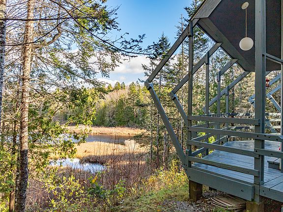 Peace & privacy awaits at this contemporary year-round cottage with stunning views and 272' of privately owned waterfrontage on the Orange River! Inside enjoy open concept living on the 1st floor including dining room & kitchen, half bath w/ shower and laundry. On the second floor, find the bedroom sleeping loft with walk-in closet & half bath with commode & lavatory. Sip your morning coffee on the wrap-around deck taking in the northeasterly views of the river beneath the sunrise while listening to the ducks play. This property is complete with all furnishings for immediate use! Property has strong rental history and is currently booked for continued rental income if so desired. This uniquely designed home is the perfect spot to escape to nature and is a must see!