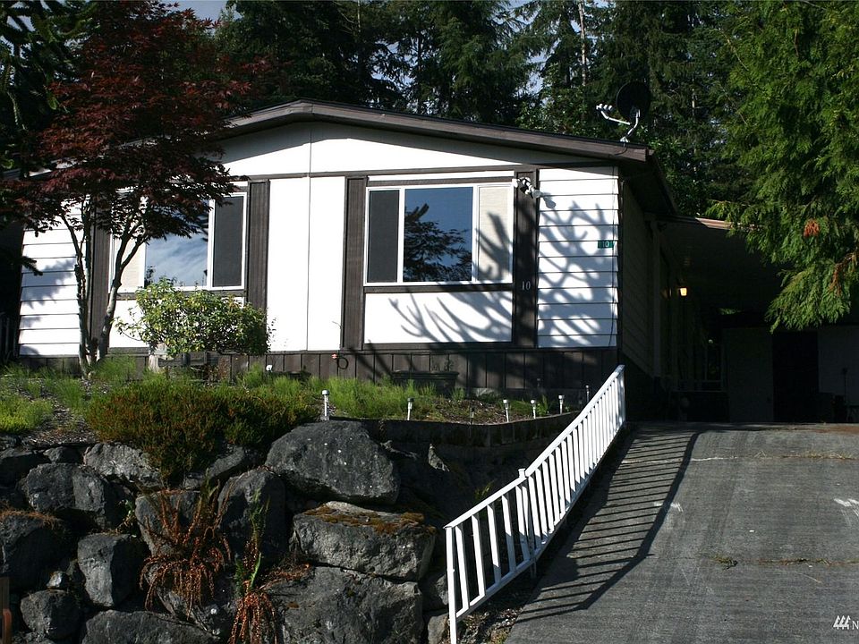 Affordable-move-in ready double wide home on a private leased lot in Laze Acres! Professionally cleaned inside and out, this home is ready for its new owners! Efficient heating and cooling with a heat pump and newer vinyl windows for additional energy savings! Lots of natural light with the numerous windows. Updated kitchen with newer flooring and cabinets & additional upper cabinets in the laundry room. Carport and 180 sq ft storage room for additional items or yard tools. Sliding glass door to exterior. Nice yard in the back and access to Robin Hill Park with developed foot and equestrian trails. Lazy Acres Park is 55 and older and requires park approval. Clubhouse, community areas and social activities. Come have a look!
