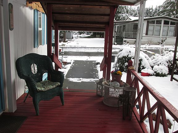 Really cute cottage in the woods! Remodeled and completely renovated with designer touches. BIG single wide mobile home (14 X 70) with large, solid, permitted extension (total 1300 s.f.). Self-supporting roof-over (roof is in excellent condition), fully insulated by PUD program (cost $10,860) in 2013. Newer vinyl windows. Three bedrooms, one luxurious bathroom, one half bathroom, large open concept kitchen/dining area, spacious living room, big studio/hobby room (or third bedroom). Much more!