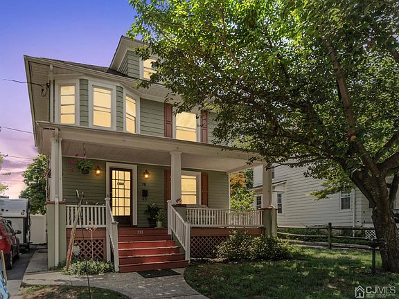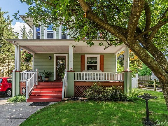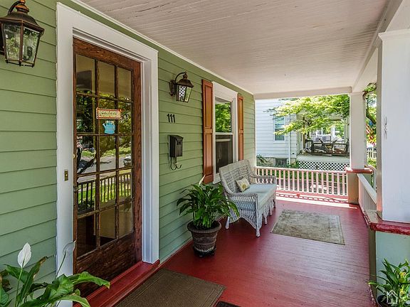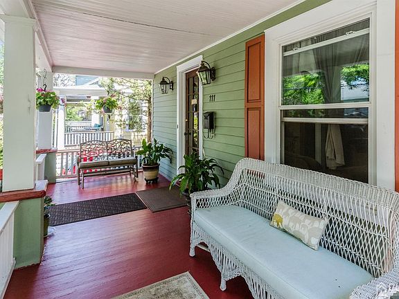 Beautiful colonial with rocking chair front porch welcomes you into a home steeped in original details. The first floor offers a large foyer, LR and DR with original HW floors, updated kitchen and full bath! The second level, also with original HW floors, has 3 bedroom, office/library, and remodeled full bath. The bonus walk-up attic is large enough to finish. The fully fenced backyard offers a large shaded deck which leads to a quaint patio area, original 2 car detached garage and plenty of grass area.