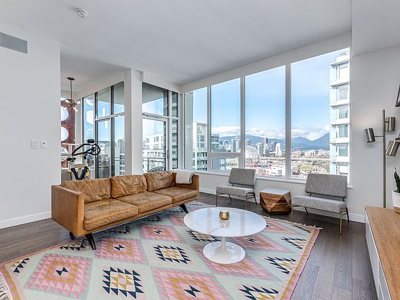 3 Bedroom homes Located in the heart of Olympic Village in and within walking distance to downtown/Yaletown, restaurants, skytrain, seawall, science world and banks. This 3 bed 2 bath suite has a great floor plan with no wasted space, 10 foot ceilings throughout and Air Conditioning. Updated kitchen with an island, offering full size steel & Integrated appliances, new stone countertops and gas stove cooktop. Stunning views of the city, mountains & science world, perfect for BBQs in the summer! Master bedroom comes with ensuite, walk-in closet and access to additional outdoor private patio. Block 100 has almost 5,000 sq ft of indoor & outdoor amenity space, including a gym, 2 lounges & concierge. **Bonus; Private 2 car Garage and 1 private Storage Room Included. Pets & Rentals Allowed.