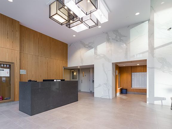 IMMACULATE & EXPANSIVE SUB-PENTHOUSE AT BLOCK 100! Just steps from the Olympic Village, this sophisticated 1 Bed 1 Bath + Den has 10ft ceilings, floor to ceiling windows, tons of natural light & incredible city/mountain views. Sleek kitchen features high-end KitchenAid & Jennair S/S appliances, incl. gourmet 5 burner gas range, muti-function convection oven & built-in microwave. Quality finishings incl. oak veneer cabinets, polished quartz countertops & wide plank laminate floor. A/C, forced air heat & Nuheat (bathroom) for ultimate year-round comfort. Generous covered balcony for outdoor lounging. Building amenities incl: Huge gym, 2 media/party rooms, rooftop garden, & full concierge service. Rental & Pet friendly. 1 Parking & 1 Storage.BY APPT ONLY OPEN HOUSE: SAT/SUN MARCH 5/6, 2-4PM.