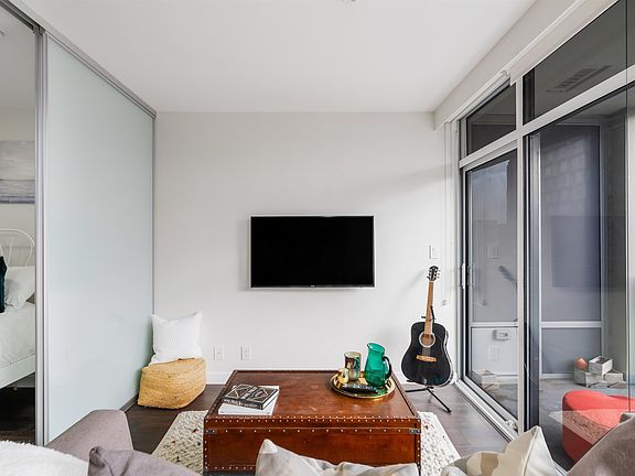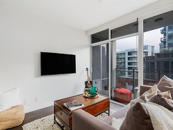 Welcome to this stunning Junior 1 bedroom at Block 100 nestled in the heart of Olympic Village. Close to everything FALSE CREEK has to offer including the seawall. Providing a highly efficient floor plan with an open kitchen, stainless steel appliances and quartz countertops. This is a great opportunity to own in this beautiful and coveted neighborhood. The additional bonus of the storage/flex space is perfect for an office, nursery, walk-on closet or pantry! Extensive building amenities include a well-equipped gym, clubhouse, roof-top garden, lounges, and concierge service. Not to mention all the cafes, restaurants, markets, services and recreation, all practically at your door-step.No rental restrictions, owner previously rented the unit as an airbnb while travelling. Open House 5/6 2-4