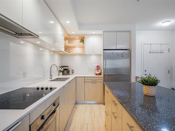 Welcome to the Versatile, a 5 story boutique building by Intracorp in the heart of Lower Lonsdale. This home has no wasted space and features floor to ceiling windows, Light laminate flooring, top of the line kitchen appliances, insuite laundry and a spa like bathroom. Enjoy the addition of a beautiful kitchen Island, making this cozy suite even more functional. The location can't get better than this, with a 100% walk score, transit accessible, and just steps to all the top restaurants on Lower Lonsdale! Rentals allowed and up to three pets welcome, parking and storage included. Showings by Private Appointment Only